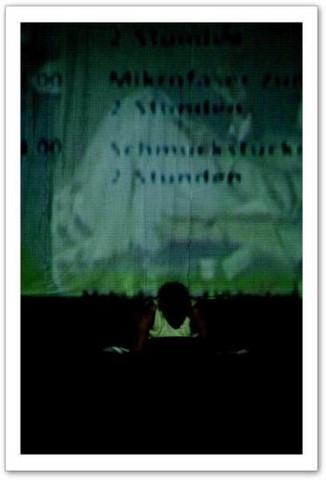 La projection : Par sa création composée à la fois de diapositives et de vidéos, le vidéaste donne le ton du spectacle. Son travail fait partie intégrante de la création et est utilisé à la fois comme ambiance, regard des personnages sur eux-mêmes, ou regard du public sur les personnages, sans oublier une petite pointe d'humour. Il permet de mettre en avant ce qui est suggéré par la scène interprétée. Aussi, la deuxième partie du spectacle se tourne plus particulièrement sur "le regard" alors la vidéo devient un personnage à part entière.